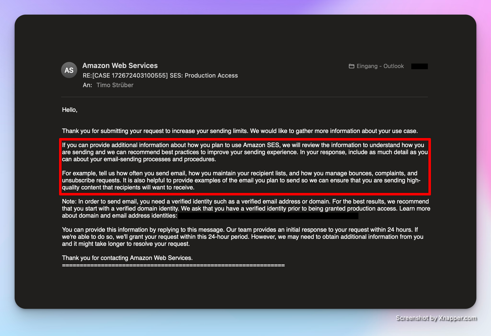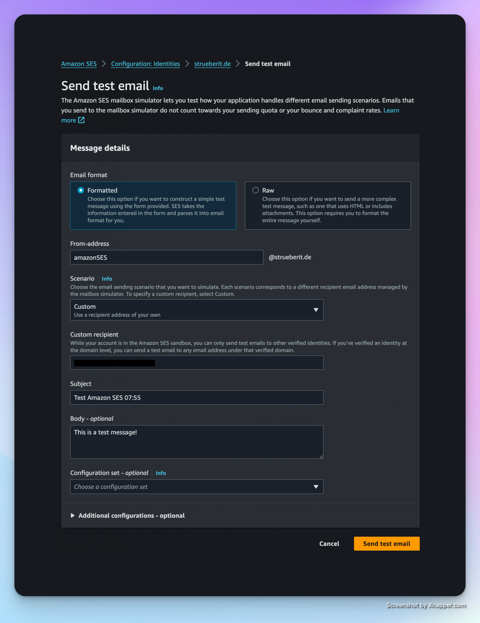 -from 'amazonSES@strueberit.de' `
