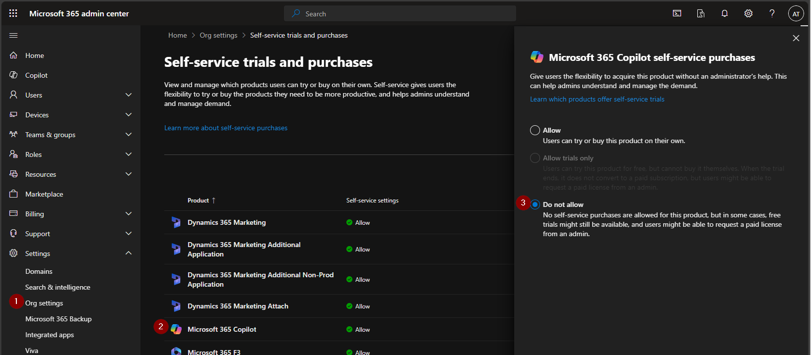 Get-MSCommerceProductPolicies -PolicyId AllowSelfServicePurchase
