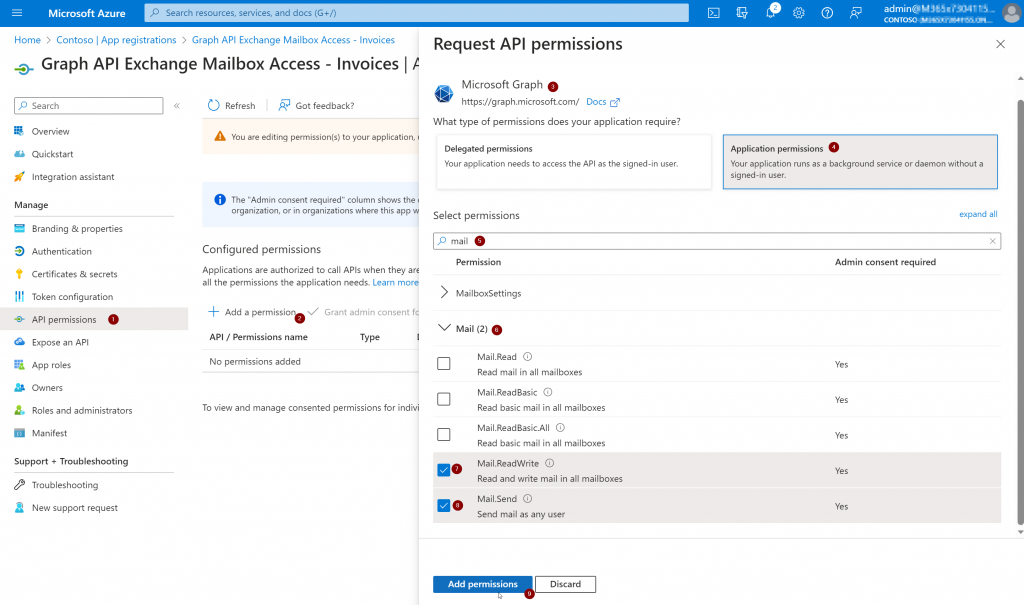 3. „Invoices“ -> The mailbox that is accessed through this App Registration
