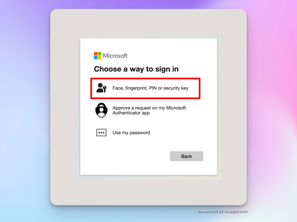 I can choose between my recently configured Passkey or the Authenticator app. I go with „security key,“ which is basically Passkey: