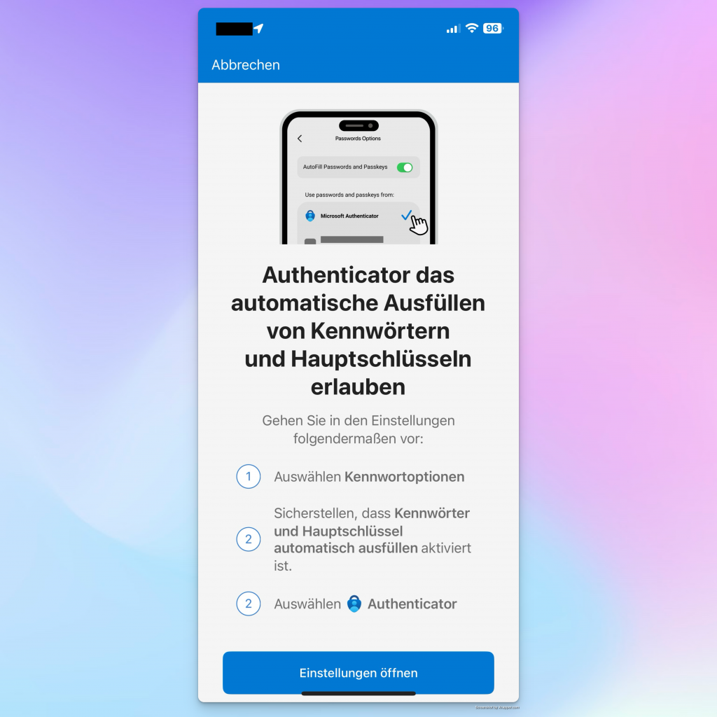 Since I’ve enabled MFA for this user, I get a pop-up asking me to authenticate the process by entering a number. This will happen on the device. Finally, the authenticator app asks me to set the app as my preferred app for passkeys (in German, „Hauptschlüssel“):